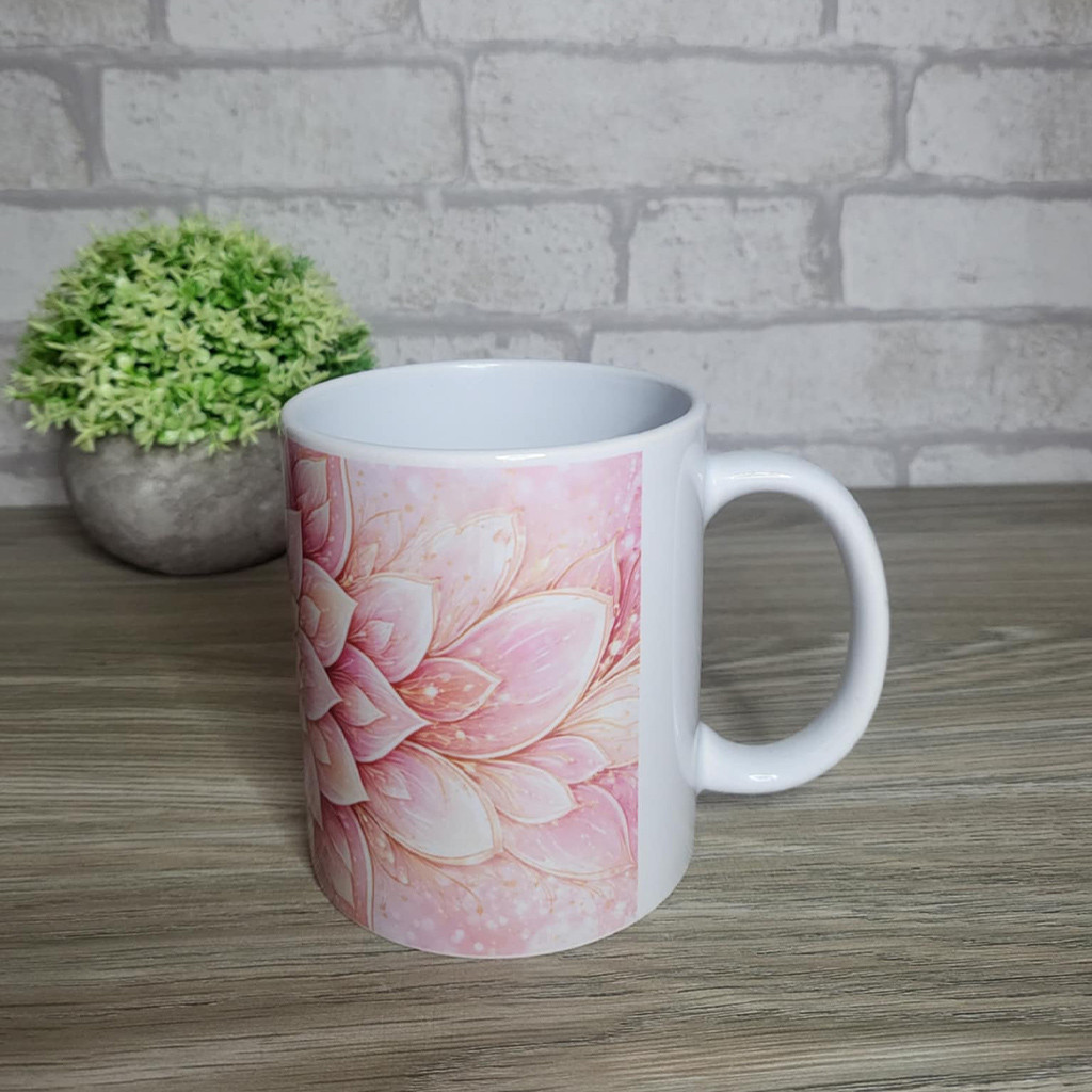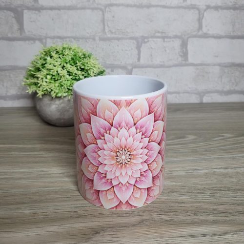 Rózsaszín virágmandala mintás bögre