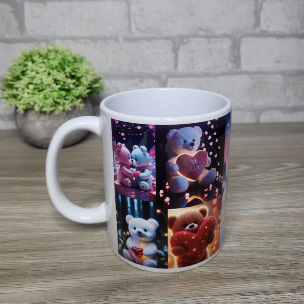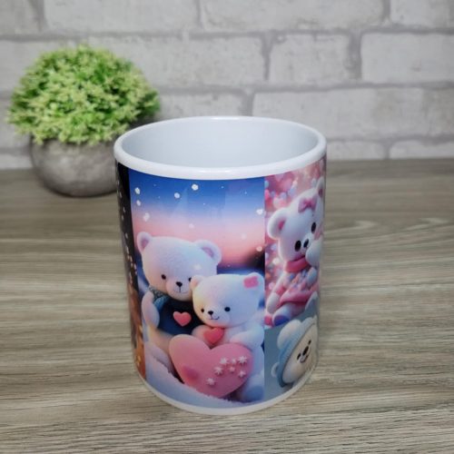 Ez a szerelmes macis mintával díszített bögre igazán kedves és érzelmes hangulatot áraszt. A több képből összeállított, szíves motívumokkal kiegészített macis minták melegséget és szeretetet sugároznak, így minden kávézás vagy teázás egy kicsit különlegesebb élménnyé válik.
