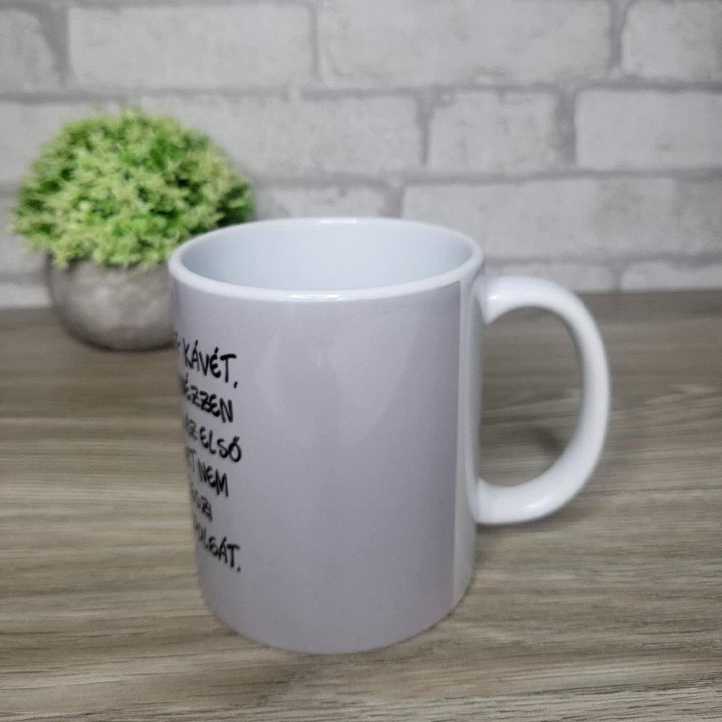 Ez a vicces kávés felirattal és kedves rajzos mintával díszített bögre ideális társ minden reggeli kávézáshoz. A humoros szöveg és a letisztult grafika együtt gondoskodik róla, hogy már az első korty előtt mosolyt csaljon az arcodra.
